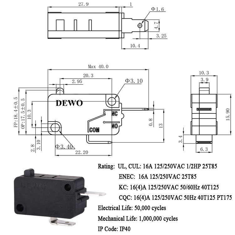 Terminal type:187 quick connect terminal/250 quick connect / Solder terminal/ left side PCB terminal/ right side PCB terminal/ Screw terminal