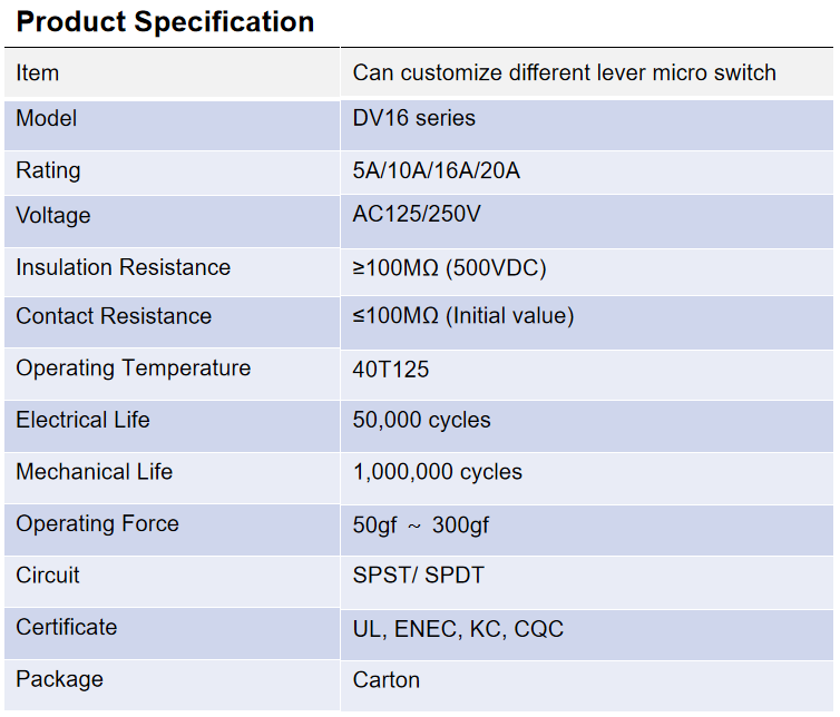 - DV micro switch