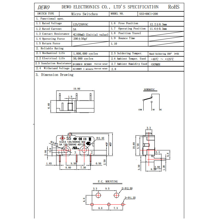 Terminal type:Solder terminal/Straight PCB terminal/110 quick connect terminal/ left side PCB terminal/ right side PCB terminal