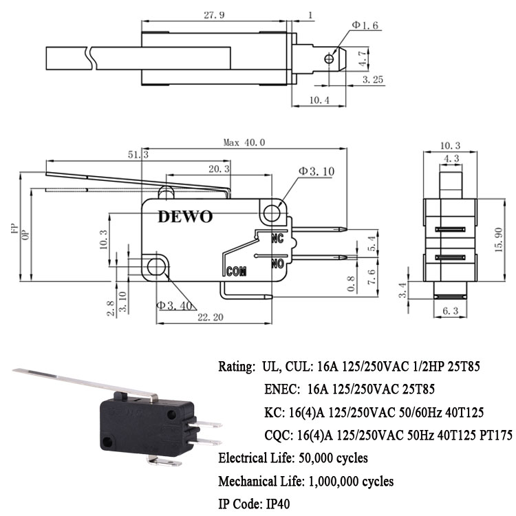 DV-16-A03-NN1-060E型微動開關