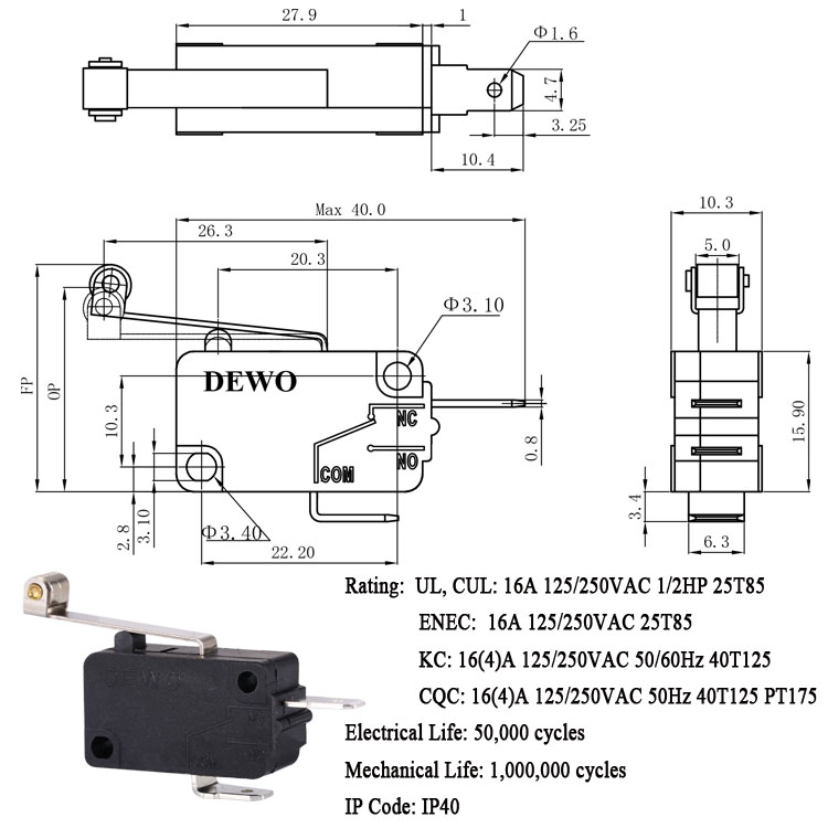 DV-16-A06-NN2-100E型微動開關