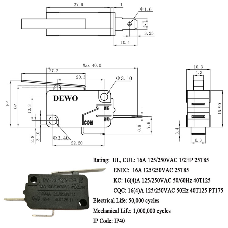 DV-16-A02-NN3-100E型微動開關