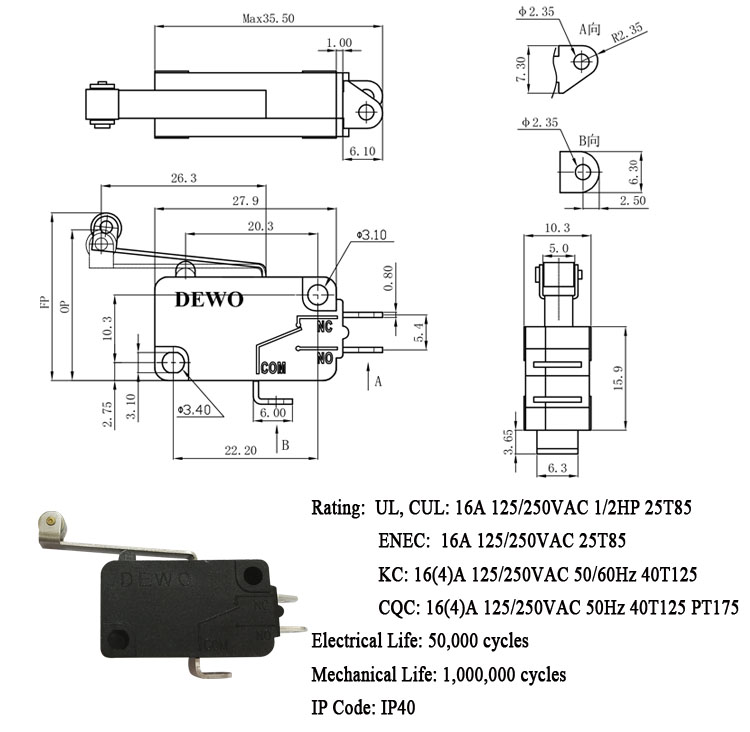 DV-16-A06-AA1-200E型微動開關