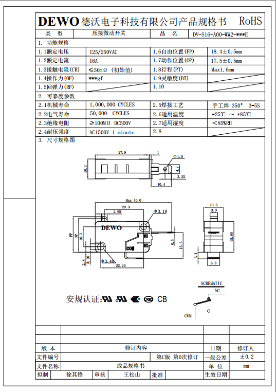 DV-16-A00-WW2-200E型微動開關