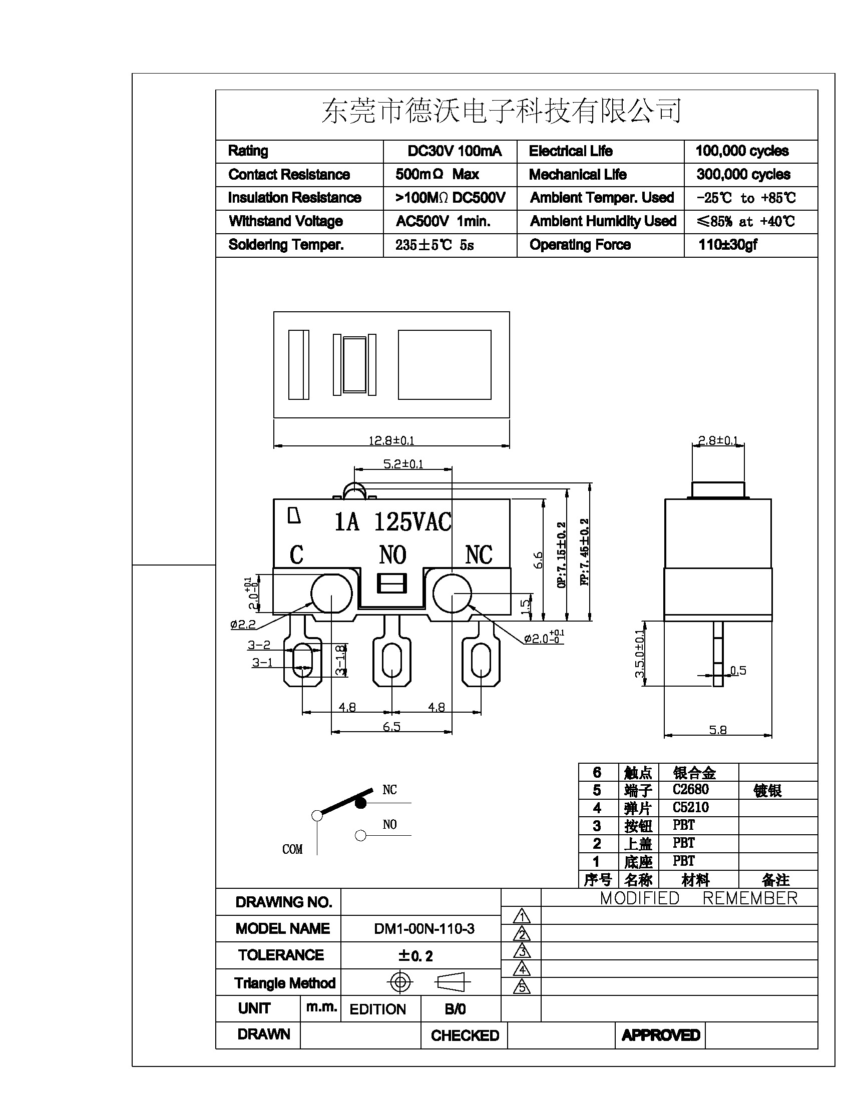 DM1-00N-110-3小型微動(dòng)開關(guān)
