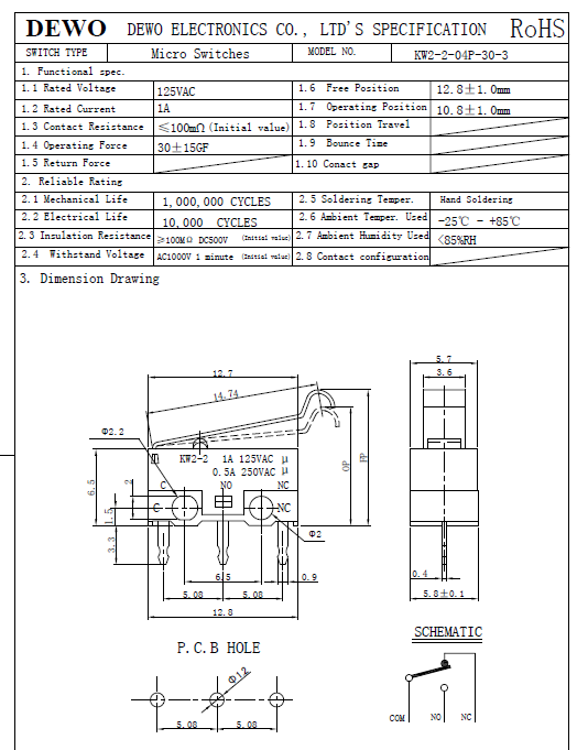 KW2-3-04P-30-5小型微動(dòng)開(kāi)關(guān)